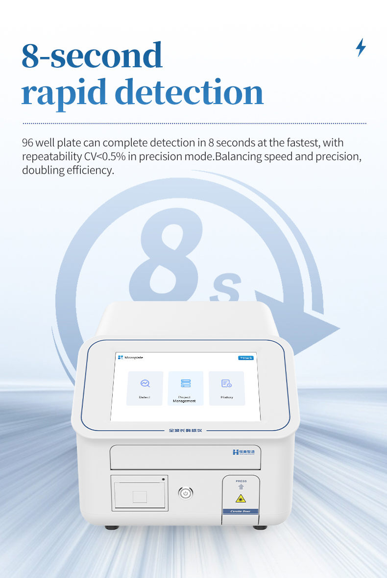 12. Microplate measurement speed: Fast mode<8 seconds, Precision mode<28 seconds