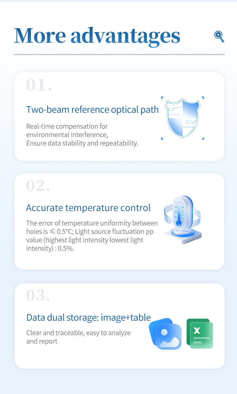 8. Supports endpoint detection, dynamic monitoring, and full band spectral scanning modes, compatible with covered/uncovered microplates and colorimetric dishes (including colorimetric dish incubation function);